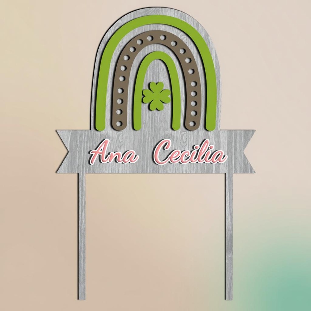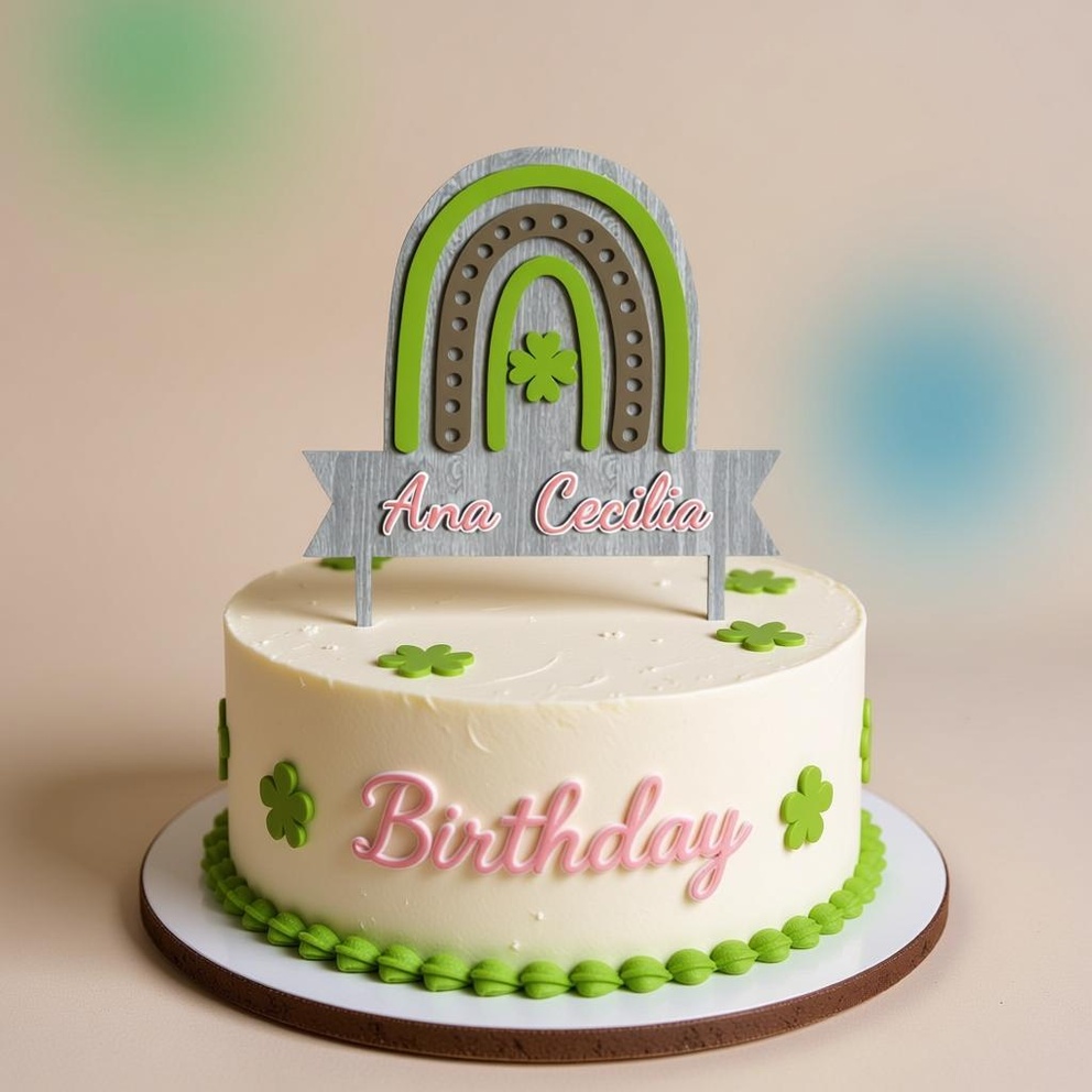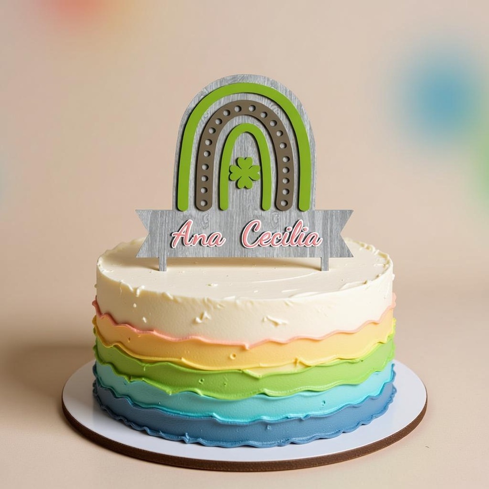 Custom Name Lucky Clover Rainbow Cake Topper