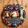 This custom America 250th Anniversary door sign features the American eagle, Liberty Bell, Statue of Liberty, and the United States flag — symbolizing strength, unity, and heritage.