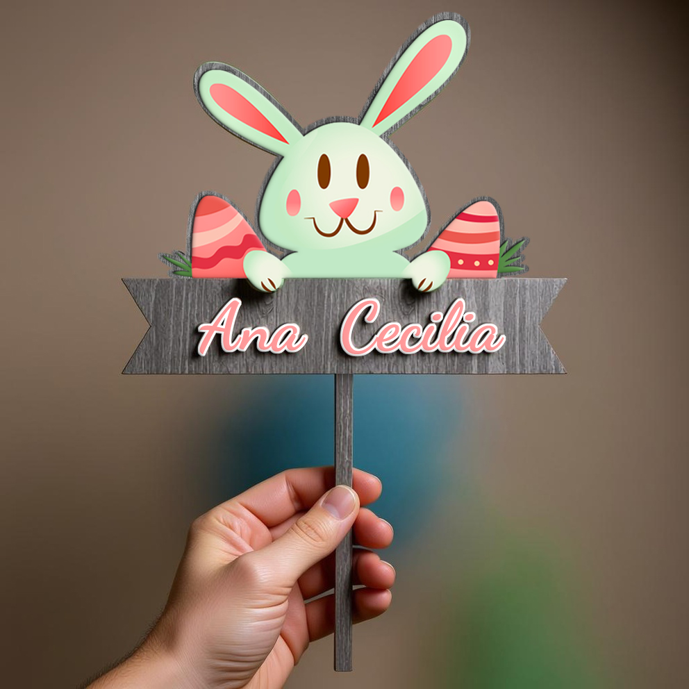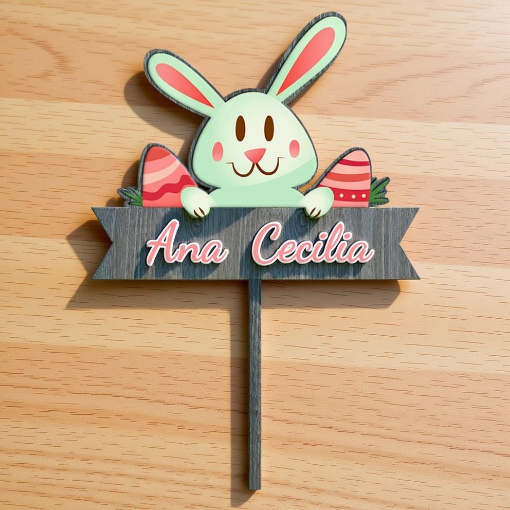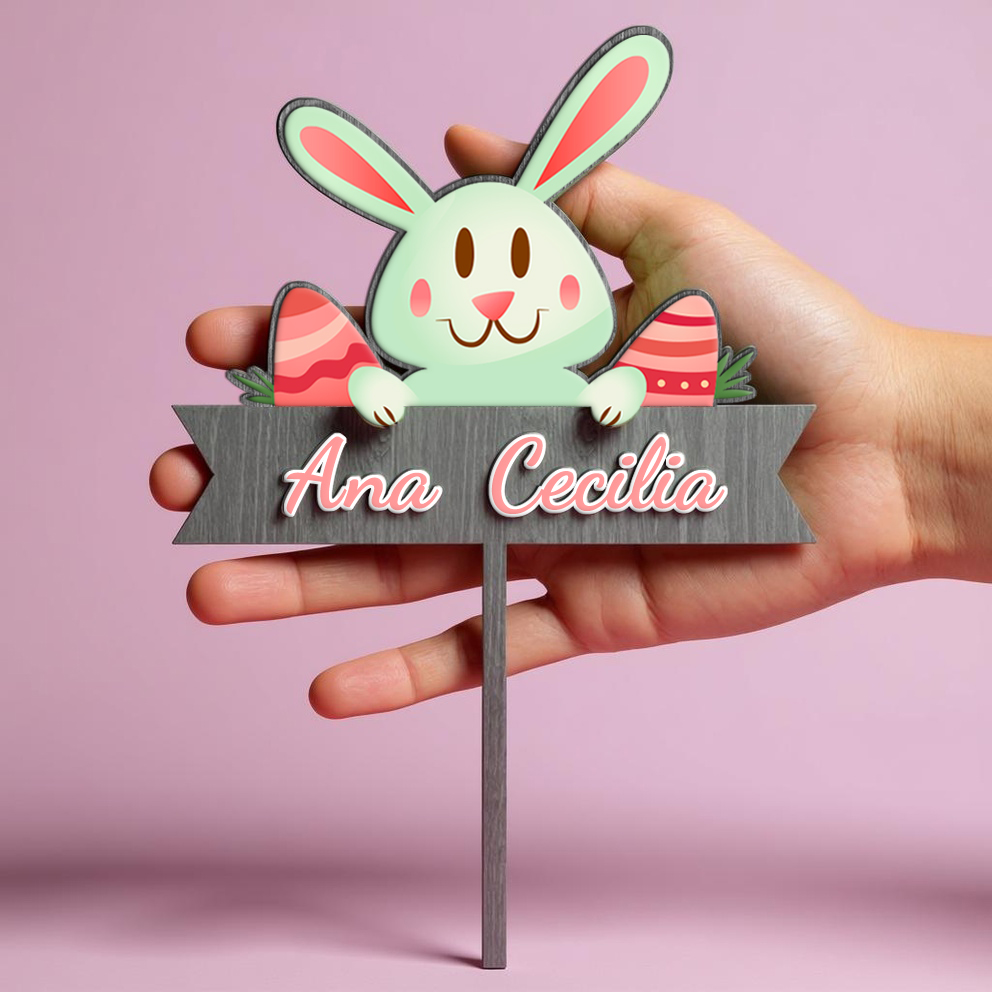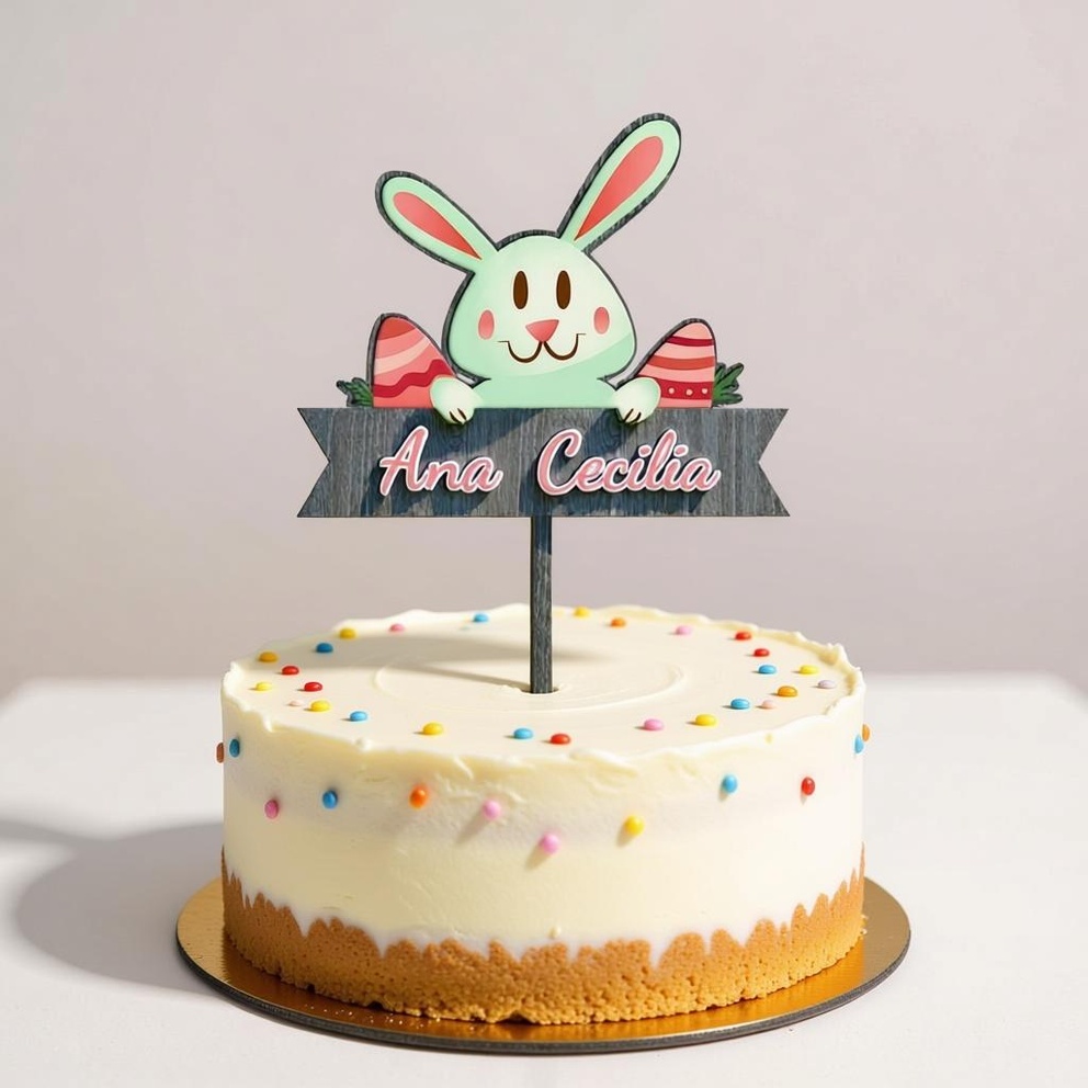 This product is a delightful Easter bunny themed cake topper designed as an adorable cake decoration for spring celebrations, birthdays, or Easter parties.