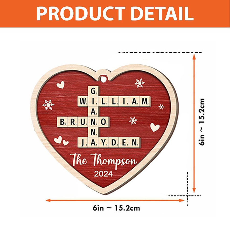 Bring your family together with our Custom Family Crossword Puzzle Art 2-Layer Wooden Ornament! This personalized Scrabble-style ornament features your family’s names in a unique crossword design, making it a one-of-a-kind addition to your Christmas tree. Perfect as a 2025 Christmas gift for families, this beautifully crafted wooden ornament adds a touch of personalized charm and festive spirit to your holiday decor.
