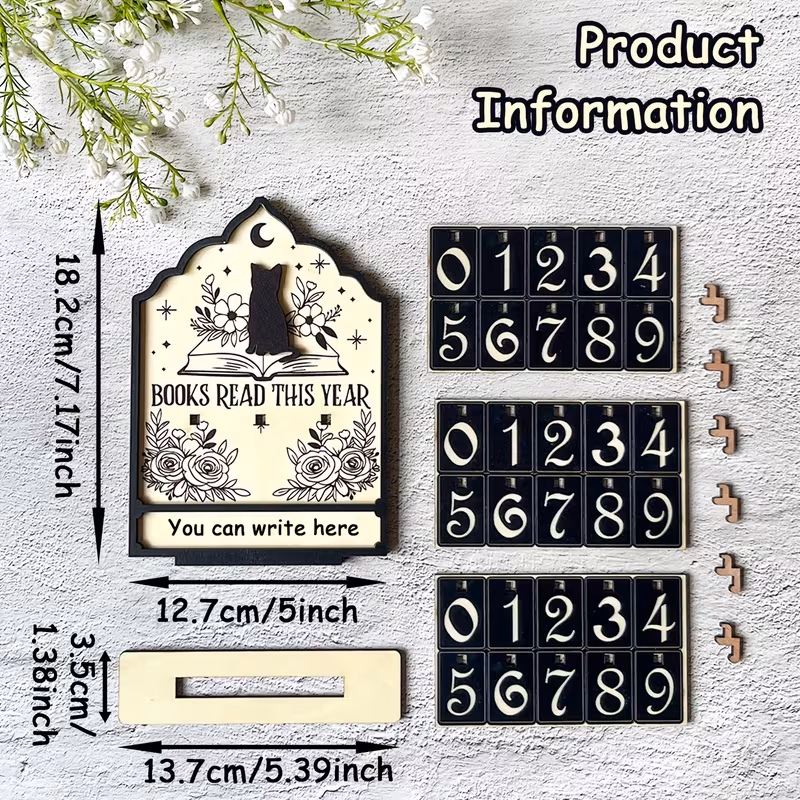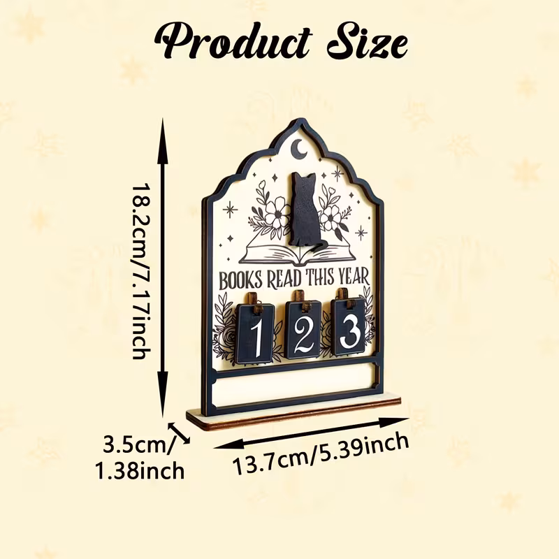Track your reading journey in style with this adorable vintage-inspired reading counter! Featuring a charming bookshelf design with interchangeable flip numbers.