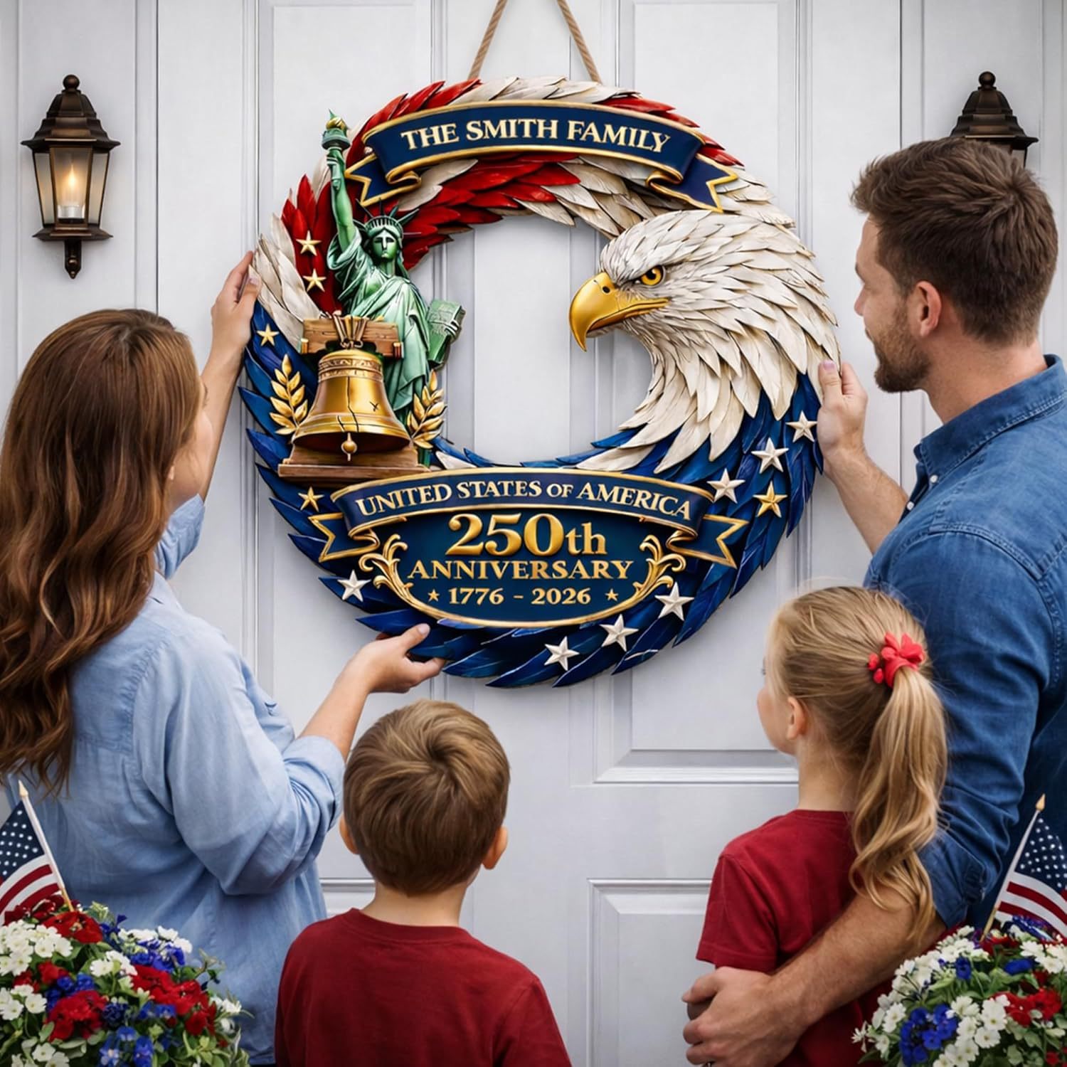 Personalized USA 250th Anniversary Plaque – Custom Family Name Flat Print, Independence Day Commemorative Wall Decor